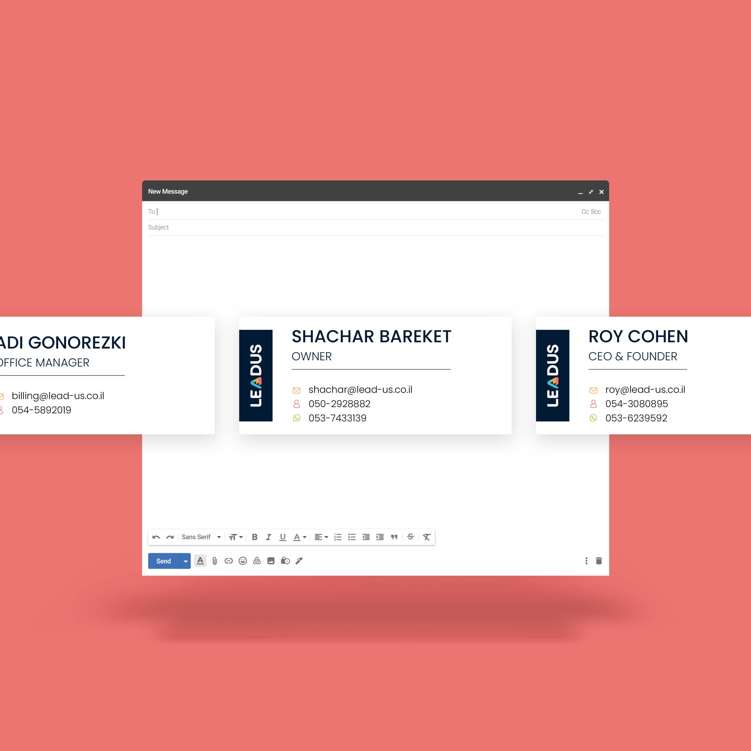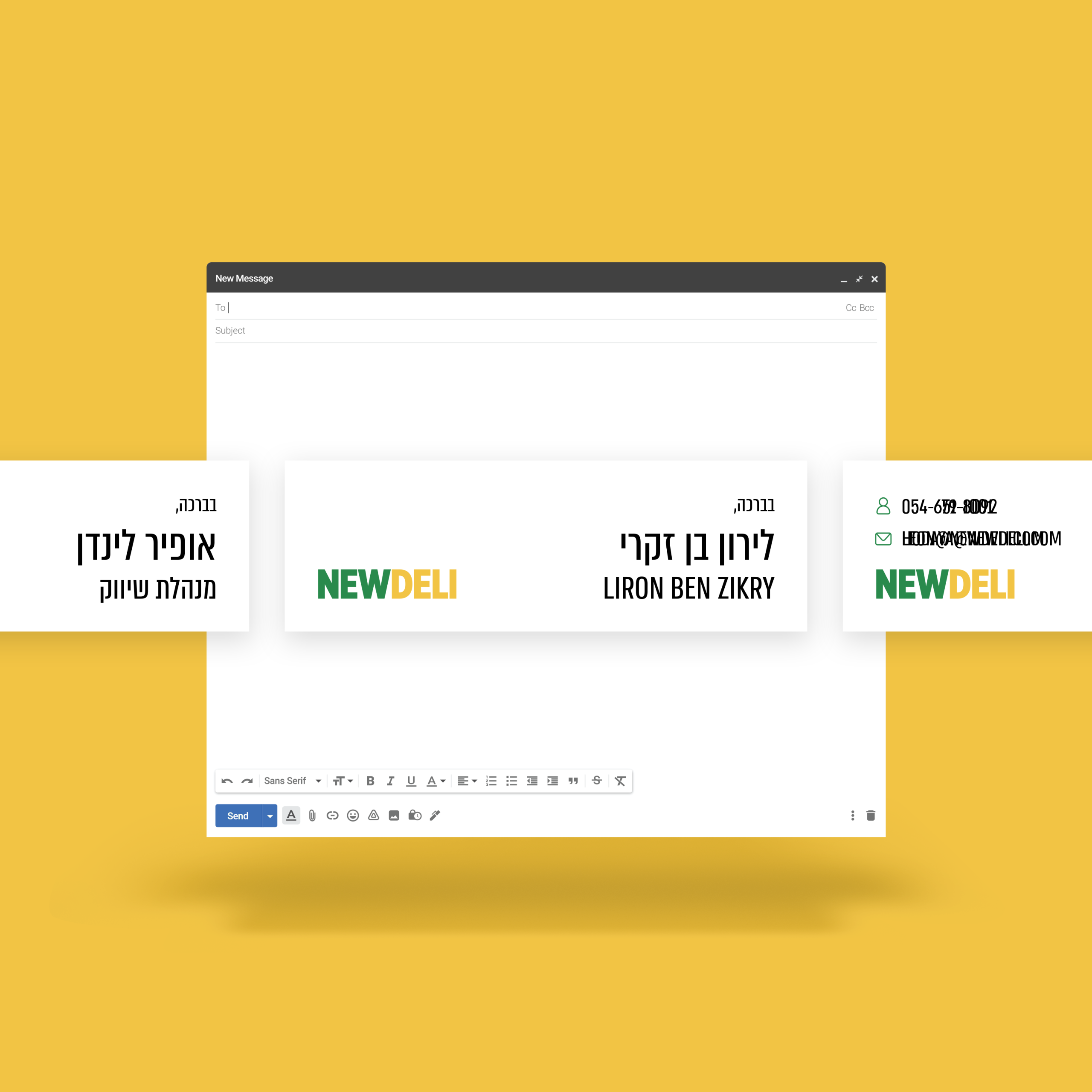 עיצוב חתימה להטבעה בגוף המייל המכילה לוגו ופרטי התקשרות